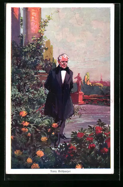 AK Franz Grillparzer beim Parkspaziergang