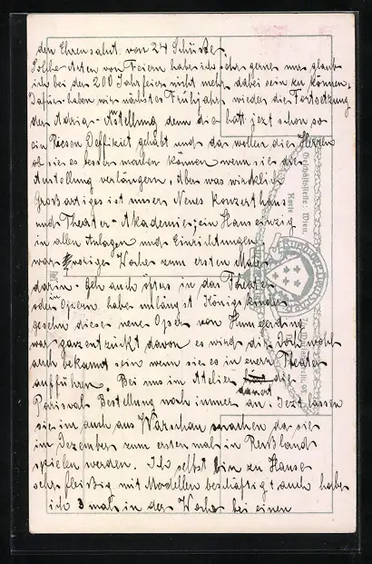 Personenbezogene Daten auf der Rückseite der Karte wurden durch blauen Textmarker unkenntlich gemacht. Die blauen Stellen sind auf die Vorderseite durchgeweicht und wirken sich negativ auf das Postkartenfoto aus