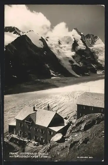 AK Franz Josefshaus, Berghütte mit Grossglockner