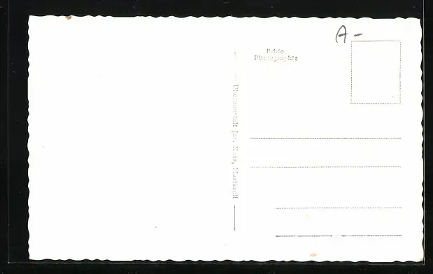 Personenbezogene Daten auf der Rückseite der Karte wurden durch blauen Textmarker unkenntlich gemacht. Die blauen Stellen sind auf die Vorderseite durchgeweicht und wirken sich negativ auf das Postkartenfoto aus