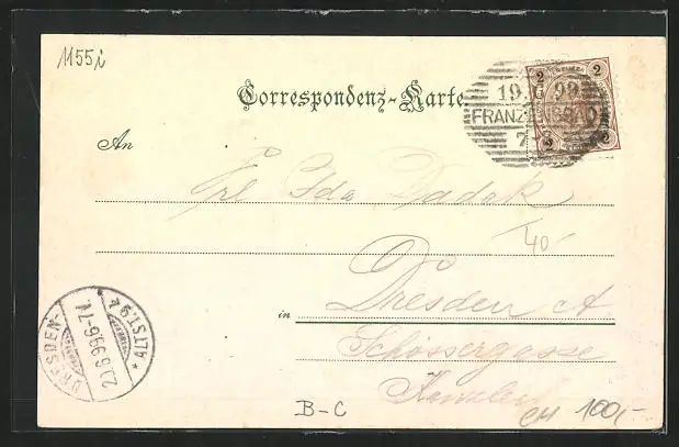 alte Ansichtskarte, gelaufen 1899, guter Zustand
