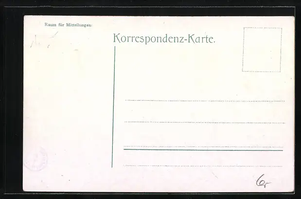Personenbezogene Daten auf der Rückseite der Karte wurden durch blauen Textmarker unkenntlich gemacht. Die blauen Stellen sind auf die Vorderseite durchgeweicht und wirken sich negativ auf das Postkartenfoto aus