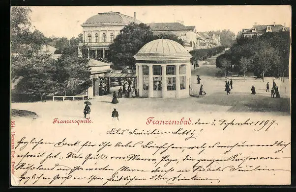 AK Franzensbad, Franzensquelle mit Kaiserstrasse