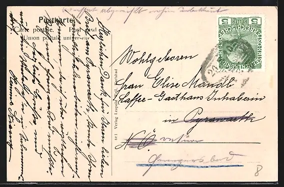 gelaufen 1910, Eckknicke li. oben u. re. unten, guter Zustand