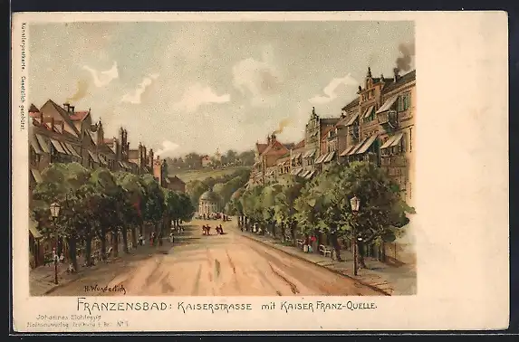 AK Franzensbad, Kaiserstrasse mit Kaiser Franz-Quelle