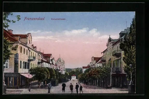 AK Franzensbad, Passanten in der Kaiserstrasse