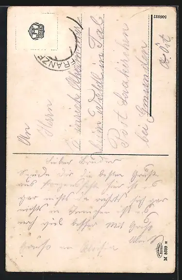 alte Ansichtskarte, gelaufen, Briefmarke entfernt, rückseitig Oberflächenschaden, Eckknick re. unten, Bugspur unten horizontal, guter Zustand