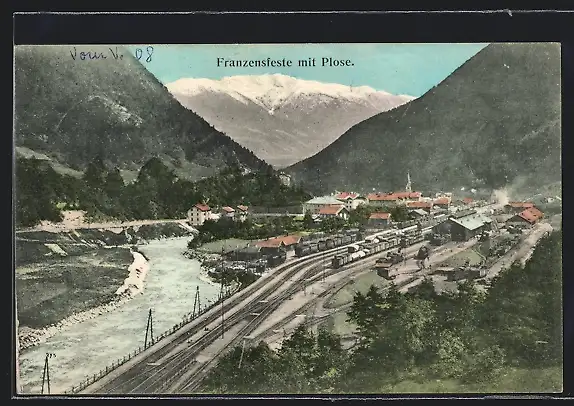 AK Franzensfeste, Ortspartie mit Plose und Eisenbahn