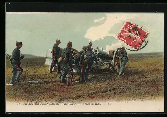 AK Französische Armee, Artillerie-Geschütz wird in Stellung gebracht