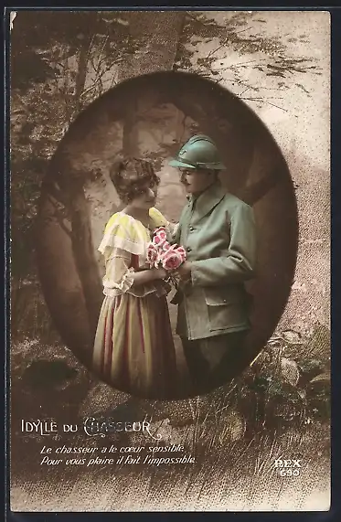 AK Französischer Chasseur in Uniform mit seiner Liebsten