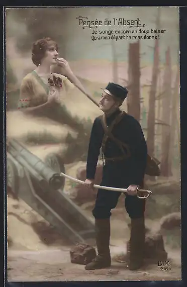 AK Französischer Soldat in Uniform denkt an seine Geliebte