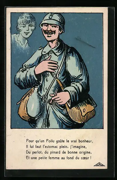 AK Französischer Soldat in Uniform denkt an seine liebste