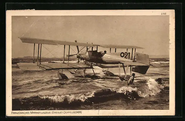 AK Französisches Marineflugzeug (Breguet-Doppeldecker)