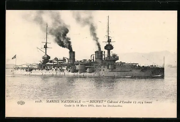 AK Französisches Schlachtschiff Bouvet gibt Volldampf