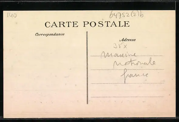 Personenbezogene Daten auf der Rückseite der Karte wurden durch blauen Textmarker unkenntlich gemacht. Die blauen Stellen sind auf die Vorderseite durchgeweicht und wirken sich negativ auf das Postkartenfoto aus