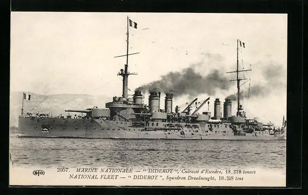 AK Französisches Schlachtschiff Diderot gibt Volldampf