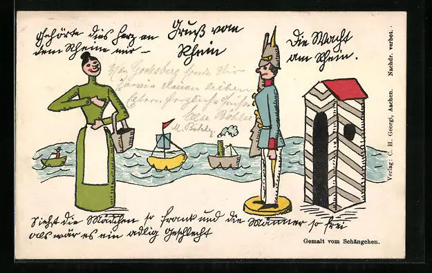 AK Frau, Soldat, Wachhäuschen als Holzspielzeug