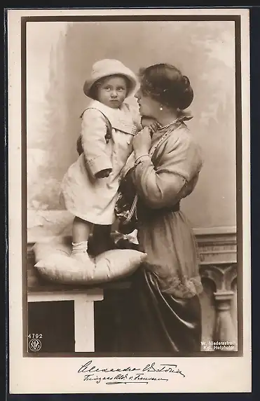 AK Frau des Prinz August Wilhelm von Preussen mit ihrem Kind
