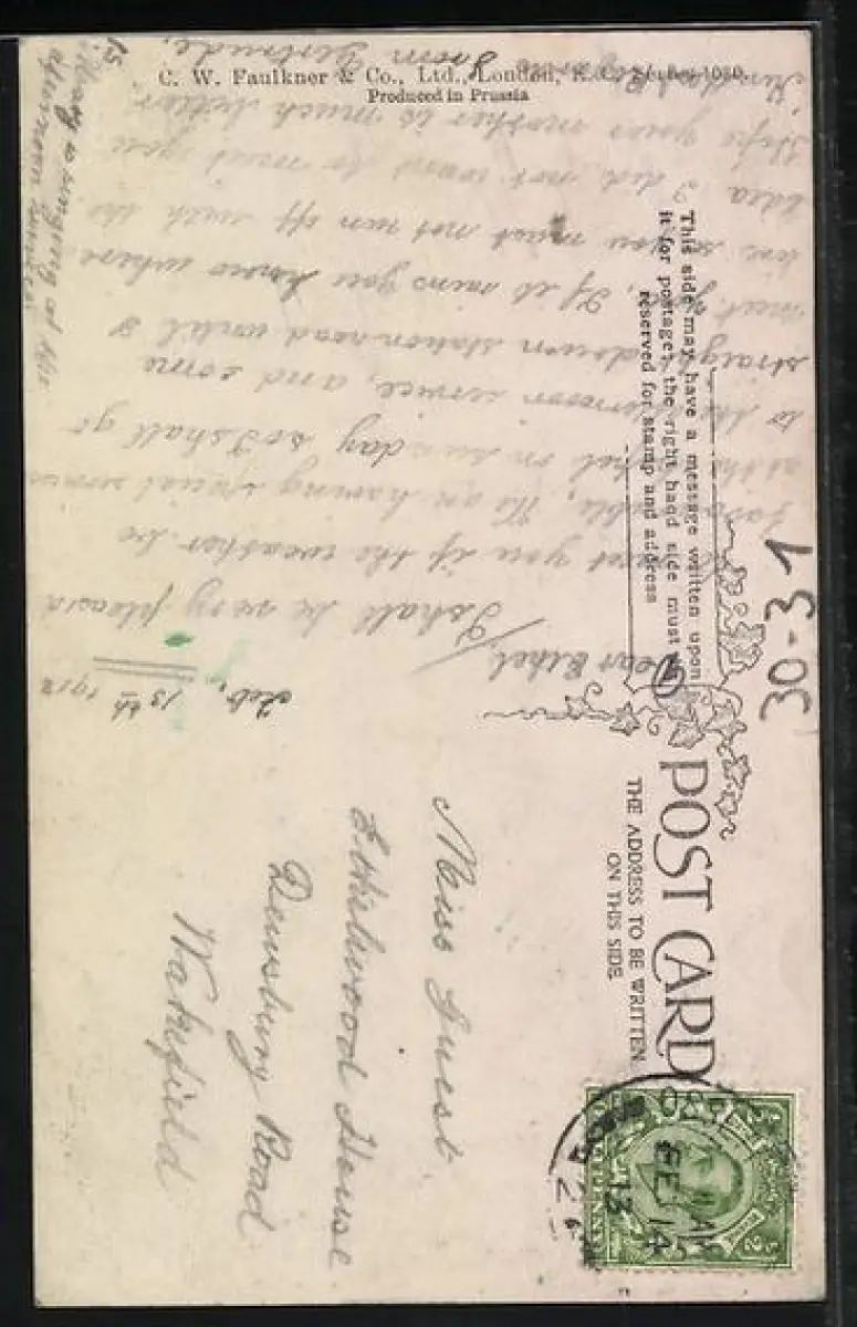 alte Ansichtskarte, gelaufen 1913, Eckknicke unten, Bugspur li. mittig, guter Zustand