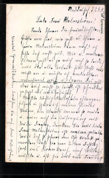 Personenbezogene Daten auf der Rückseite der Karte wurden durch blauen Textmarker unkenntlich gemacht. Die blauen Stellen sind auf die Vorderseite durchgeweicht und wirken sich negativ auf das Postkartenfoto aus