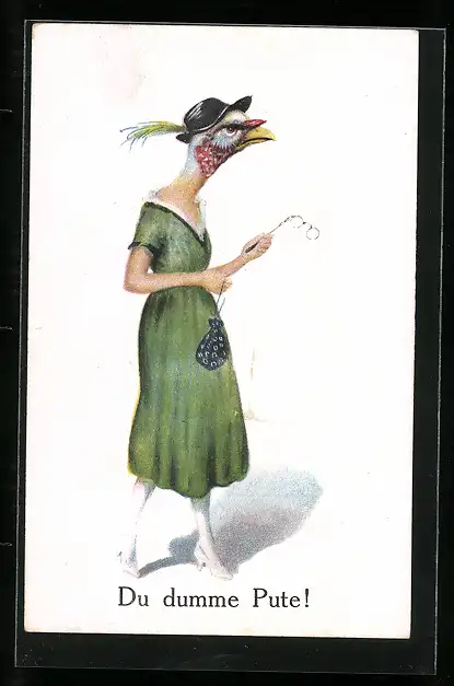 AK Frau mit Putenkopf, frauenfeindlicher Humor