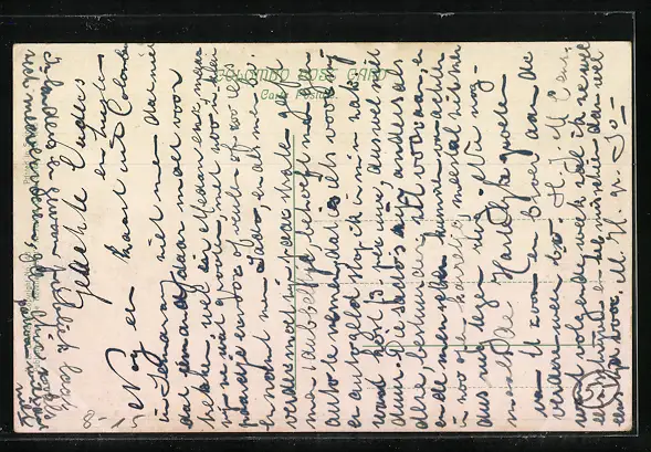 Personenbezogene Daten auf der Rückseite der Karte wurden durch blauen Textmarker unkenntlich gemacht. Die blauen Stellen sind auf die Vorderseite durchgeweicht und wirken sich negativ auf das Postkartenfoto aus