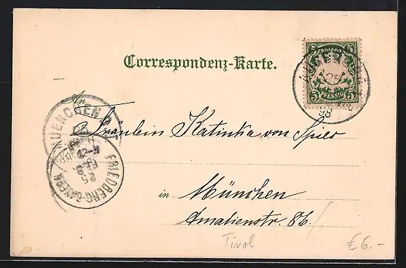 alte Ansichtskarte, gelaufen 1898, guter Zustand