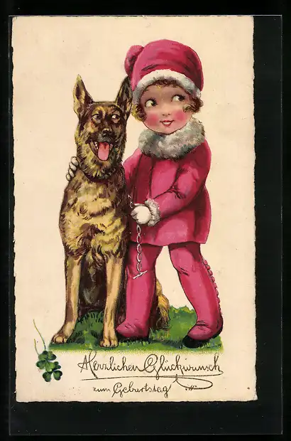 AK Frau mit einem Schäferhund