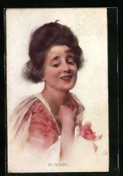AK Frau mit hochgestecktem Haar und zweifelndem Lächeln