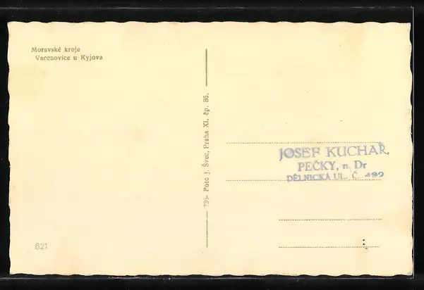Personenbezogene Daten auf der Rückseite der Karte wurden durch blauen Textmarker unkenntlich gemacht. Die blauen Stellen sind auf die Vorderseite durchgeweicht und wirken sich negativ auf das Postkartenfoto aus