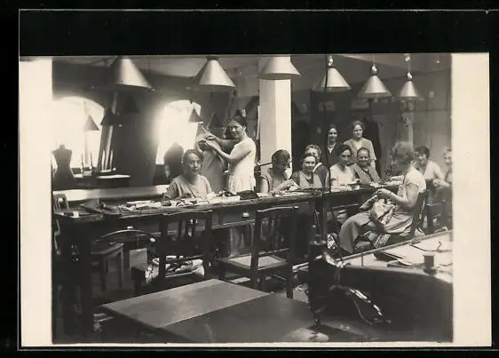 AK Frauen beim Nähen als Heimarbeit