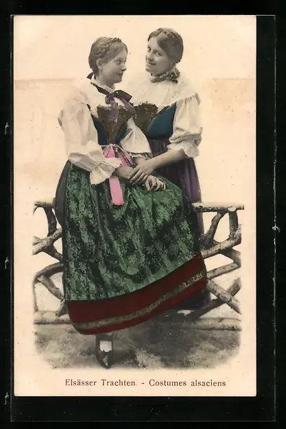 AK Frauen in Elsässer Trachten