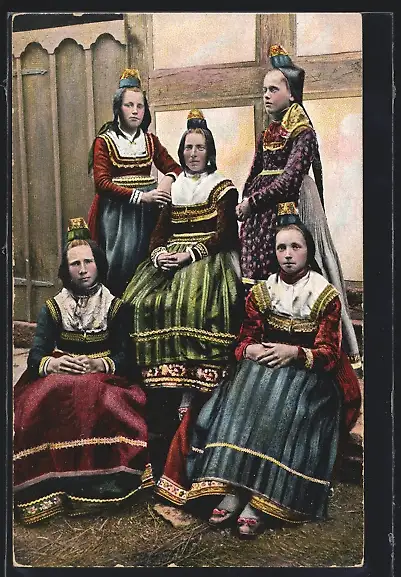 AK Frauen und Mädchen in hessischer Tracht