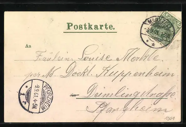alte Ansichtskarte, gelaufen 1901, Albumspuren, Stempelspur, guter Zustand