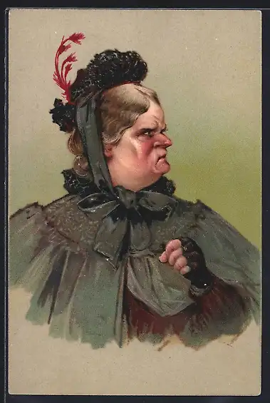 AK Frauenfeindlicher Humor mit unansehnlich dargestellter, gekränkter Schwiegermutter