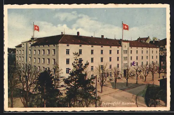 AK Frauenfeld, Kaserne mit Strasse aus der Vogelschau