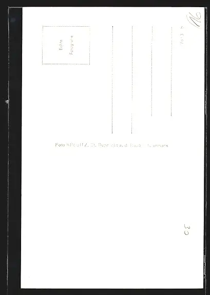 Personenbezogene Daten auf der Rückseite der Karte wurden durch blauen Textmarker unkenntlich gemacht. Die blauen Stellen sind auf die Vorderseite durchgeweicht und wirken sich negativ auf das Postkartenfoto aus