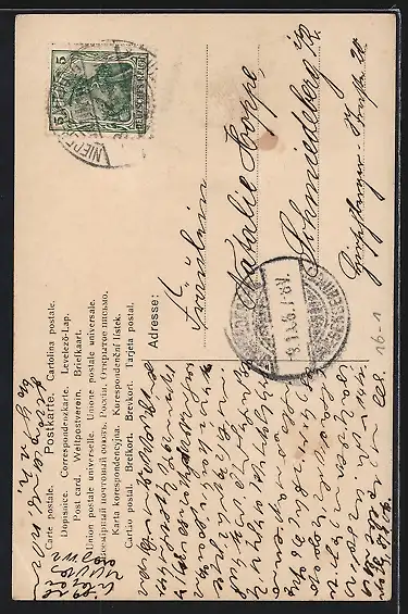 alte Ansichtskarte, gelaufen 1906, Eckknick re. unten, guter Zustand