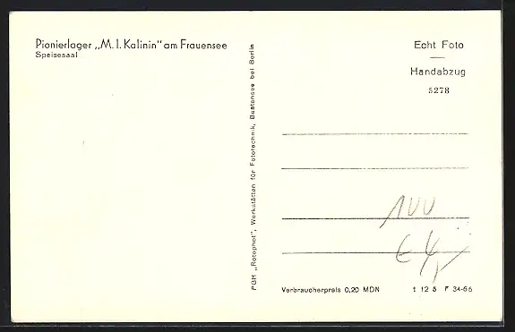 AK Frauensee, Pionierlager M. I. Kalinin, Speisesaal