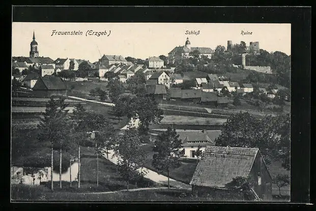 AK Frauenstein / Erzgeb., Ortsansicht mit Schloss und Ruine