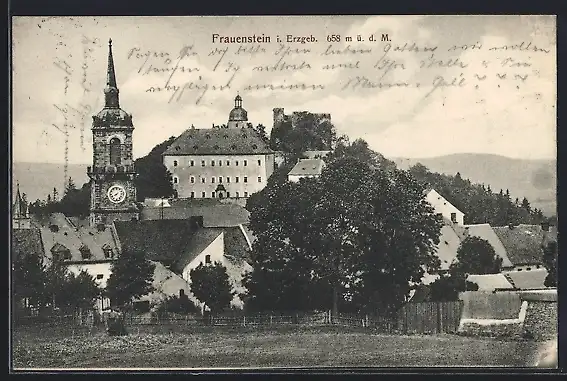 AK Frauenstein / Erzgeb., Ortspartie mit Kirche