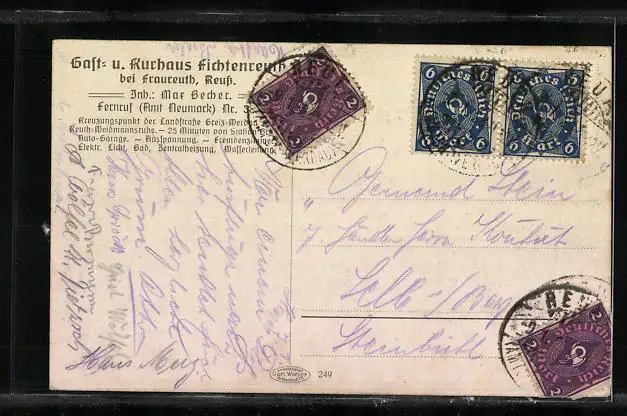 AK Fraureuth /Reuss, Gast- Und Kurhaus Fichtelreuth von Max Becher