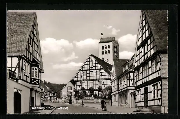 AK Fredeburg / Sauerland, Strassenpartie mit Fachwerkhäusern