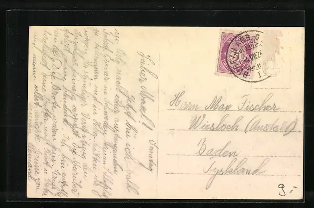 alte Ansichtskarte, gelaufen, Briefmarke entfernt, guter Zustand