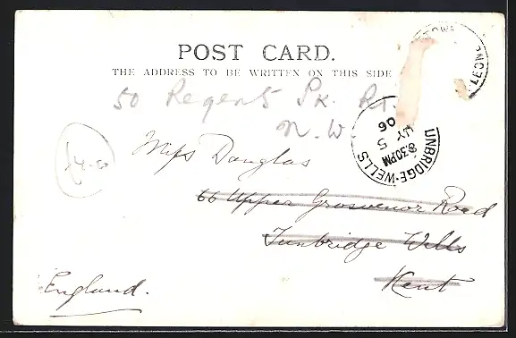 alte Ansichtskarte, gelaufen 1906, Briefmarke entfernt, rückseitig Oberflächenschaden, guter Zustand