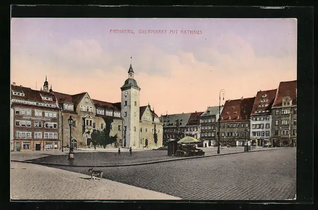 AK Freiberg, Obermarkt mit Rathaus