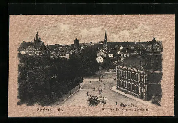 AK Freiberg i. Sa., Blick über Postplatz und Hornstrasse