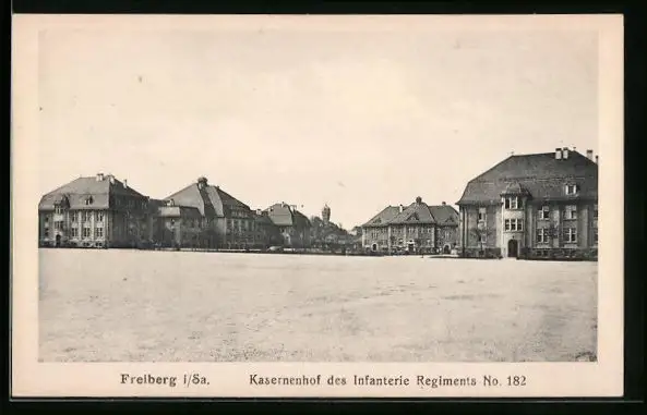 AK Freiberg i. Sa., Kasernenhof des Infanterie Regiments No. 182