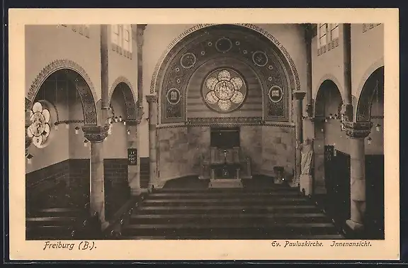 AK Freiburg / Breisgau, Innenansicht d. Ev. Pauluskirche