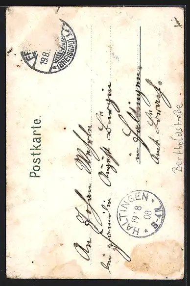 alte Ansichtskarte, gelaufen 1908, Briefmarke entfernt, Stempelspur, guter Zustand